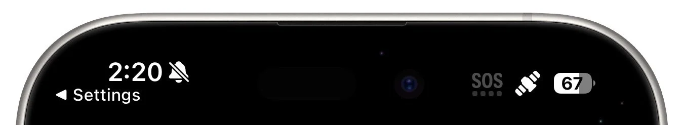 Apple designed Messages via satellite for use only when you truly need it. You can’t just switch it on whenever you want—your iPhone will offer the option only when there’s no cellular or Wi-Fi connection available. When this happens, the SOS icon in your status bar indicates that Messages via satellite can be used. It may or may not have a satellite icon next to it.